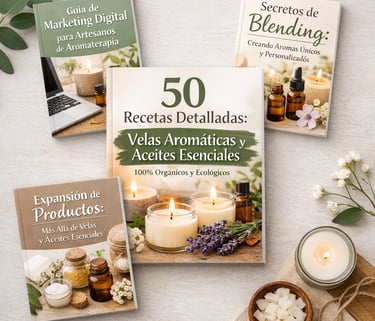 ✅Ebook Principal: "50 Recetas Detalladas: Velas Aromáticas y Aceites Esenciales 100% Orgánicos y Ecológicos"